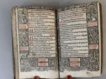 [Livre du XVIe s.]. [Heures, latin, 1531]. [HORE Deipare virginis Marie, secundum usum Romanum]. Paris, Y. Bonhomme, 1531. In-8, [111 (sur 132 ?)] f., fig., veau havane XVIIIe s., dos à 5 nerfs et muet, caissons ornés, roulette dorée aux coupes et chasses, tranches rouges (rel. usée, défauts dont coiffes découvertes, trav. de vers au plat inf. ; des ff. manquants ; accrocs et faiblesses en tête de 21 1ers f., avec des marges de tête remplacées par des fragments gravés souvent tête-bêche).