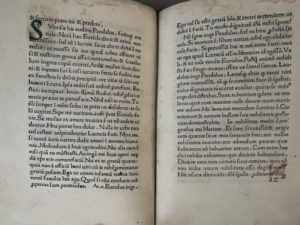 Des initiales peintes en rouge ou bleu, à l'époque, sur les lettres d'attente typographiées. Quelques annotations et soulignements anciens.