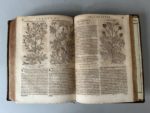 BAUHIN (Gaspard). [Pinax : en grec] Theatri botanici sive index in Theophrasti Dioscoridis Plinii et botanicorum qui a seculo scripserunt opera plantarum circiter sex millium ab ipsis exhibitarum nomina [Relié avec : ] [Prodromos : en grec] Theatri botanici in quo plantæ supra sexcentæ ab ipso primum descriptæ cum plurimis figuris proponuntur. Editio altera emendatior. Basileae, impensis JoannisRegis, 1671. Deux ouvrages en 1 vol. in-4, [12] f., 518 p., [11] f. (dont errata) ; [2] f., 160 p., [6] f., fig., veau havane glacé époque, dos à 5 nerfs, auteur, titre et fleurons dorés, filet d'encadrement à froid aux plats, tranches rouges (rel. frottée, accrocs sur 2 nerfs, coins émoussés ; rousseurs, 12 cahiers brunis).