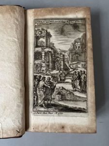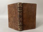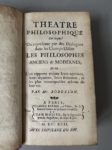 BORDELON (Laurent). Théâtre philosophique sur lequel on représente par des dialogues dans les Champs Elisées les philosophes anciens et modernes, et où l'on rapporte ensuite leurs opinions, leurs réparties, leurs sentences, & les plus remarquables actions de leur vie. A Paris, chez C. Barbin et J. Musier, 1692. In-12, [12] f. (dont le front.), 445 p., basane havane époque, dos à 5 nerfs, titre doré, caissons ornés, tranches rouges (mors sup. fendu, 2 coins frottés, brunissures).