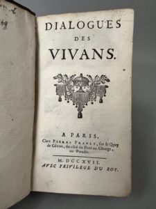 BORDELON (Laurent). Dialogues des vivans. A Paris, chez Prault, 1717. In-12, 392 p., [8] f. …