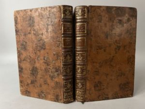CASTEL DE SAINT-PIERRE (Charles Irénée). Annales politiques A Londres, s.n., 1757. 2 vol. in-8, 678 p. en continu, basane havane époque, dos à 5 nerfs, caissons ornés, pièces de titre et de tomaison veau fauve, tranches rouges (coiffes de queue et coins émoussés, trav. de vers marginaux au début du t.2).
