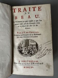 CROUSAZ (Jean-Pierre de). Traité du beau. Où l'on montre en quoi consiste ce que l'on nomme …