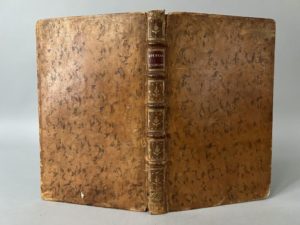 [Magnétisme]. [DELANDINE (Antoine-François)]. De la philosophie corpusculaire, ou des connoissances et des procédés magnétiques chez les divers peuples. Par M. Del******. A Paris, chez Cuchet, 1785. In-8, [1] f., 200 p., [2] f. (approb., errata), basane fauve mouchetée époque, dos à 5 nerfs, pièce de titre grenat, caissons ornés, tranches rouges (défauts mineurs dont 2 coins usés et trav. de vers en queue du dos, titre, 2 derniers ff. et p.30-31 brunis).