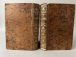 [DELEYRE (Alexandre)]. Analyse de la philosophie du chancelier François Bacon, avec sa vie. A Leyde, chez les Libraires associés 1778. 2 vol. in-12, [1] f., 424 p. + [2] f., 428 p., un portrait gravé de Bacon h.-t., basane havane marbrée époque, dos lisse, pièce de titre veau havane, tomaison frappée, tranches rouges (coiffes d'un tome arrachées, qq. épid. et piqûres de vers ; table de la première partie reliée par erreur en début de vol).