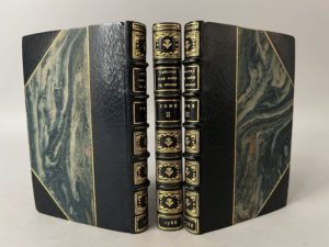 [DELISLE DE SALES (J.-B.-C.)]. Théâtre d'un poète de Sybaris, traduit pour la première fois du grec, avec des commentaires, des variantes et des notes, pour servir de supplément au Théâtre des Grecs. A Sybaris, et se trouve à Paris, 1788. 3 vol. in-18, demi-maroquin bleu marine à coins, dos à 5 nerfs ornés d'un pointillé doré, titre, tomaison et date dorés, caissons ornés, filet doré aux plats, tête dorée [Yseux] (des coins frottés).