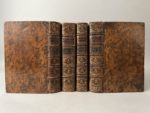 [DEZALLIER D'ARGENVILLE (Antoine-Joseph)]. Abrégé de la vie des plus fameux peintres, avec leurs portraits gravés en taille-douce, les indications de leurs principaux ouvrages, quelques réflexions sur leurs caractères, et la manière de connoître les desseins et les tableaux des grands maîtres. A Paris, chez de Bure, 1762. 4 vol. in-8, pl., veau havane marbré époque, dos à 5 nerfs, pièce de titre maroquin grenat, tomaison frappée, caissons ornés, filet doré aux coupes, tranches rouges, restaurations (qq. défauts dont des mors en partie fendillés, tomaisons frottées, qq. pl. lég. jaunies, rouss. modérées).