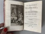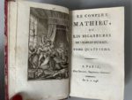 [DULAURENS (Henri-Joseph)]. Le compère Mathieu, ou les Bigarrures de l'esprit humain. A Paris, chez Dufart, an 6 - 1798. 4 vol. in-12, demi-basane brune époque, dos lisse, pièce de titre et de tomaison vert bronze, filets et fleurons dorés (trav. de vers en queue de 2 dos, plats frottés, des coins émoussés, rouss. modérées).