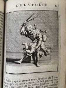Nouvelle édition établie sur celle de Bâle. L'illustration entièrement gravée sur cuivre se compose d'un frontispice, d'une planche composée des portraits d'Erasme, de Th. Morus et d'Holbein ; de 6 planches dépliantes, et de 74 figures couvrant ¾ de page, d'après les compositions de Holbein. Signature ancienne au titre : « Canu, arpenteur ».