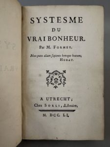 FORMEY (Johann Heinrich Samuel). Systesme du vrai bonheur. [Relié à la suite] : Essai sur la …