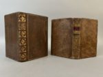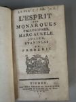 On joint : - [LA PORTE (Joseph de) [ou] DUPUIS (Alexandre-Nicolas)]. L'esprit des monarques philosophes, Marc-Aurèle, Julien, Stanislas et Frédéric. Vienne, chez J.-T. de Trattnern, 1765. In-12, VIII-256 p., veau havane époque, dos à 5 nerfs, caissons ornés, titre doré, plats décorés d'un double encadrement de roulettes à froid et d'une roulette dorée en bordure, roulette à froid aux plats, tranches marbrées (épid., 2 coins émoussés, piq. de ver en queue du dos, intérieur bruni avec qq. auréoles angul.).