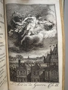 Belle édition illustrée d'un frontispice répété, de 2 vignettes de titre dont une répétée, d'un bandeau aux armes répété, et de 8 planches dont 6 illustrent L'Art de la guerre, le tout gravé sur cuivre, les pl. et les front. par Fokke.