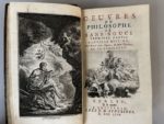 [FRÉDÉRIC II (roi de Prusse]. Oeuvres du philosophe de Sans-Souci. Nouvelle édition, avec de très-belles figures, de jolies vignettes, et de variantes. Berlin, et se trouve à Amsterdam, chez J. H. Schneider, 1764. Trois parties en 2 vol. in-12, front., 322 p., [1] f. (table), 23 p. (variantes) + 171 p., [1] f. ; [6] f., XXII-130 p., [1] f. (table), 23-24 p., fig., pl., fr., basane fauve mouchetée fin XVIIIe s., dos lisse, fleurons et filets dorés, pièce de titre et tomaison verte, tranches jaunes (trav. de vers en tête d'un dos, petits accrocs à 3 coiffes, mouill. claire en pied de p. de qq. ff. du t.1, trace de cachet aux titres).