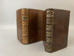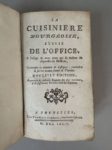 On joint : [MENON (Joseph). La cuisinière bourgeoise, suivie de l'Office, à l'usage de tous ceux qui se mêlent de dépenses de maisons A Bruxelles, chez F. Foppens, 1774. In-12, 480 p., basane havane époque, dos à 5 nerfs, pièce de titre verte, caissons ornés, tranches rouge (coiffe de queue rongée, coins usés, mouillure angulaire).
