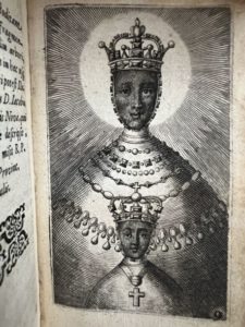 Edition originale de ce joli recueil composé en l'honneur de la dévotion mariale, où sont décrits les principaux lieux de culte répartis en Europe et ailleurs. Elle est illustrée d'un frontispice répété et de 50 planches montrant des représentations de la Sainte Vierge. Deux autres volumes complémentaires ont paru en 1659.