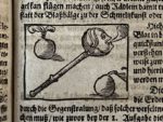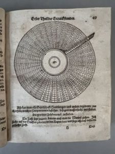 Première édition de la seconde partie de cet ouvrage, composée par l'érudit originaire de Nuremberg G. P. Harsdörffer (1607-1658) pour donner suite aux travaux de Daniel Schwenter dont la réédition constituait la première partie. Un troisième volume a paru en 1653. L'illustration se compose d'un titre gravé sur cuivre, d'une figure gravée sur bois comportant une volvelle p.49, d'une grande figure gravée sur cuivre contrecollée p.517, d'une planche dépliante gravée sur bois en regard de la p.517, et d'un grand nombre de figures gravées sur bois dans le texte.