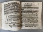 HARSDÖRFFER (Georg Philipp). Delitiae mathematicae et physicae. Der mathematischen und philosophischen Erquickstunden. Zweyter Theil: Bestehend in funffhundert nutzlichen und lustigen Kunstfragen, nachsinnigen Aufgaben, und deroselben grundrichtigen Erklarungen, auss Athanasio Kirchero, Petro Bettino, Marino Mersennio, Renato des Cartes, Orontio Fineo. Nurnberg, Gedruckt und verlegt ben J. Dumlern., 1651. In-4, [12] f. (dont le titre-front.), 620 p., [2] f., fig., pl., parchemin de réemploi avec notation musicale en rouge et noir, dos lisse et muet, traces de lacets, restaurations (taches aux plats, accroc au mors inf. ; lacunes hors du texte habilement comblées au titre, brunissures soutenues ordinaires).