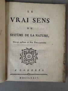 [HELVÉTIUS (Claude Adrien). Le vrai sens du systême de la nature, ouvrage posthume de Mr. …