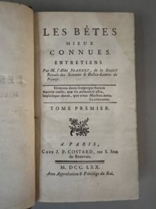 JOANNET (Jean-Baptiste-Claude). Les bêtes mieux connues, entretiens. A Paris, chez J.P. Costard, …