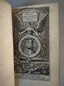 - SALLUSTE. C. Sallustius Crispus cum veterum historicorum fragmentis. Amstelodami, ex Officina Elzeviriana, 1658. In-12, [8] f. (dont le titre gravé), 310 p. (mal chiff. 210), [17] f., veau havane marbré époque, dos lisse et orné, pièce de titre brune, filet doré auxcoupes, tranches rouges (1 coiffe découverte, 2 coins frottés, rouss. éparses modéres).