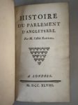 On joint : - RAYNAL (G.-T.). Histoire du Parlement d'Angleterre. A Londres, s.n., 1748. In-12, VIII-376 p., veau havane moucheté époque, dos à 5 nerfs, pièce de titre grenat, caissons ornés, tranches marbrées (coiffe de tête découverte, un coin ém., trav. de vers sur 2 mors).
