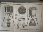 Seconde édition, imprimée par Chardon, rue de la Harpe, en 1792, et avec les gravures signées. L'illustration se compose de 13 planches dépliantes gravées à l'eau-forte et au burin par Marie-Anne Paulze-Lavoisier, épouse et collaboratrice de l'auteur ; et 2 tableaux dépliants dans le 1er vol.