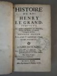 PÉRÉFIXE DE BEAUMONT (Hardouin de). Histoire du roi Henry le Grand Nouvelle édition revue A Paris, chez Didot, Nyon, 1749. 2 tomes en un vol. in-12, [6] f., p. 1-260, [1] f. (2è titre), p. [261]-570, [2] f., veau havane glacé époque, dos à 5 nerfs, pièces de titre et de tomaison rouge et brune, caissons ornés à la grotesque, triple filet doré bordant les plats, roulette dorées aux coupes et chasses, tranches rouges (2 coins et coiffe de tête usés, lég. bruniss. marg.). Provenance : Ecole libre St-Joseph de Lille (cachet et étiquettes).