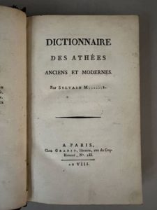 [MARÉCHAL (Sylvain)]. Dictionnaire des athées anciens et modernes. A Paris, chez Grabit, an VIII …