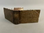 MATTHIEU (Pierre) ; PIBRAC (Guy Du Faur de) ; et al. [Recueil de pièces de poésie]. A Rouen, chez Jacques Cailloüé, 1628. In-16 oblong (66 x 104 mm), non paginé [sign. A-Z 8, Aa 8], demi-basane brune XVIIIe s., dos lisse, pièce de tire, caissons ornés, tranches rouges (plats déformés, accidents ; qq. ff. courts de marges).