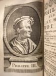 Ouvrage illustré de nombreux portraits gravé sur cuivre hors-texte (non collationné) ; ces 5 premiers volumes courent jusqu'en 1364, soit la fin du règne de Jean Ier. Provenance : aux armes de Barthélemy-François Thoinard (1683-1752), censeur au Parlement de Paris et fermier-général. Cachet moderne répété aux titres du Grand séminaire de Lons-le -Saunier.