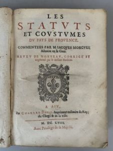 [Provence]. MORGUES (Jacques). Les statuts et coustumes du Pays de Provence. A Aix, par Charles …