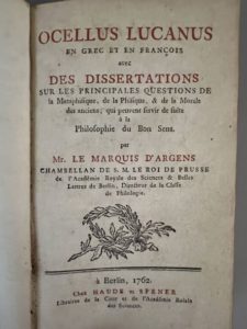 OCELLUS LUCANUS ; ARGENS (J.-B. de Boyer d') [trad.]. Ocellus Lucanus, en grec et en françois, …