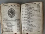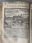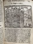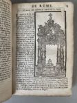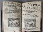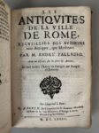 Guide de Rome à l'usage des voyageurs français qui parut en Italie dès le milieu du XVIe siècle, et dont l'on fit de nombreuses éditions jusqu'au XVIIIe. Celle-ci, donnée à Rouen, ne se trouve pas à la BnF. L'ouvrage se compose de plusieurs parties dont l'une, « Les Antiquités de la ville de Rome » est précédée d'une page de titre particulière portant le nom de Palladio. L'illustration se compose de 77 vignettes gravées sur bois figurant des monuments. Signature ancienne au titre.