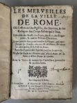 [PALLADIO (Andrea)]. Les merveilles de la ville de Rome, où il est traité des églises, des stations, & des reliques des corps saint qui y sont Avec les figures des sept merveilles du monde Sur l'imprimé à Roma, et se vendent à Rouen, chez L. Machels, 1673. In-8, 248 p., fig., parchemin souple époque, dos lisse et muet (gardes absentes, papier des contreplats renouvelé, titre remonté avec petit trou, défauts d'usage en marge, traces d'encre sans gravité p.64, manque le f. P1).
