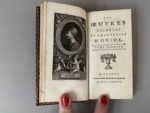 - OVIDE. Les oeuvres galantes et amoureuses. A Genève, s.n., 1777. 2 vol. in-24, maroquin rouge époque, dos lisse orné, pièces de titre et de tomaison maroquin vert, triple filet doré bordant les plats, filet doré aux coupes, roulette intérieure, tranches dorées. Portrait d'Ovide en frontispice gravé sur cuivre par De Launay d'après C.P. Marillier.