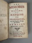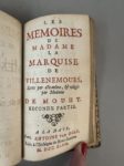 - [MOUHY (Charles de Fieux de) (?)]. Les Mémoires de Madame la Mise de Villenemours, écrits par elle-même, et rédigés par Madame de Mouhy. Première [seconde-] partie [seules, sur 4 parues]. A La Haye, chez A. Van Dole, 1747. In-12, maroquin rouge époque, dos lisse orné, pièces de titre et de tomaison maroquin vert, triple filet doré bordant les plats, filet doré aux coupes, roulette intérieure, tranches dorées (coins ém., dos pasé, coiffe de queue découverte).