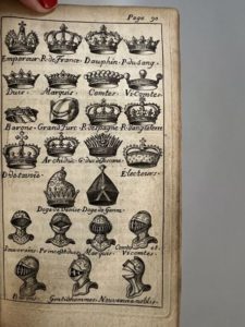 Edition originale, illustrée de 14 planches gravées sur cuivre ; en-têtes, lettrines, culs-de-lampes et nombreux blasons en bois gravés (certains en coloris d'époque). Titre en rouge et noir, vignette de titre en bois gravé peinte en bleu clair.