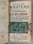 [PIANELLI DE LA VALETTE (Laurent)]. Abrégé nouveau et méthodique du blason pour apprendre facilement & en peu de jours tout ce qu'il y a de plus curieux, & de plus nécessaire en cette science. A Lyon, chez Thomas Amaulry, 1705. In-12, [12] f., 168 p., [12] f. de table, veau havane époque, dos à 5 nerfs, caissons ornées (coiffes découvertes, mors fendus, pièce de titre manquante, taches aux plats, coins émoussés taches; saliss. en marge, taches aux pp. 155-160 incluant 1 pl.).
