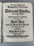 REIN (Joseph Friedrich). Das gesamte augspurgische evangelische Ministerium in Bildern und Schrifften, von den ersten Jahren der Reformation Lutheri bis auf Anno 1748, oder, das Jubel-Jahr wegen des Westphalischen Friedens [Augspurg] : Finck, [1749]. Deux parties en 1 vol. in-4, [6] f., 200 p. en continu, [1] f. (titre intermédiaire), [2] f. (index), [6] f., pl., demi-velin à coin postérieur, dos lisse et muet (dos frotté, coupes très usées, petite fente au mors sup., qq. rouss. marginales ; manque le frontispice, un portrait et 1 f. de texte, p.67-68).