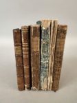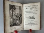 On joint : NOUVEAU chansonnier patriote, ou Recueil de chansons, vaudevilles Dédié aux martyrs de la Révolution, avec leurs portraits. Précédé de leurs Éloges par Dorat-Cubière. et suivi du nouveau calendrier comparatif. A Lille, chez De Perne, et se trouve à Paris, chez Barba, l'an deuxième [1793-94]. In-18, 164 p., [8] f. (calendrier, table), fr., demi-basane brune XIXe s., dos lisse, titre et filets dorés (trav. de vers au dos, manque de texte aux p.81 à 84). Illustré d'un frontispice gravé sur cuivre avec 2 portraits.