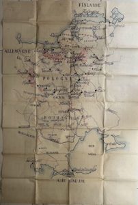 Texte très probablement inédit (nous n'avons pas trouvé trace de cette conférence publiée). Il est accompagné d'une grande carte manuscrite (174 x 118 cm) à l'encre noire, rouge et bleue et crayon bleu, montrant l'évolution des frontières et les dénominations d'états récents.
