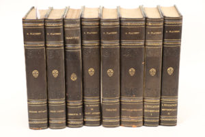 FLAUBERT (Gustave) Œuvres complètes. 8 vol. gd in-8 reliés 1/2 chagrin noir, dos à nerfs orné, tête dorée. Paris Sté Française d'Editions d'Art [May,Mantoux] s.d. Edition ne varietur. Edition définitive, complète en 8 vol. d'après les...