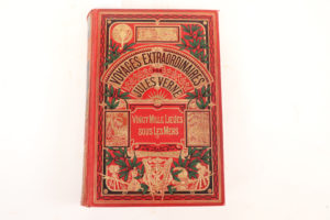 VERNE (Jules) Vingt mille lieues sous les mers. 1 vol. gd in-8 polychrome à 1 éléphant, dos au phare, tranches dorées, Voyages extraordinaires dans l'éventail, titre dans le cartouche, dos type F, 2è plat type r. Paris Hetzel s.d. (1914...