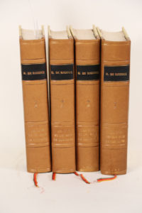 ROUJOUX (M. de) Histoire des Rois et des Ducs de Bretagne. 4 forts vol. in-8 reliés ½ basane fauve, dos à nerfs ornés d'1 hermine, couvertures conservées. Paris Ladvocat 1828-1829 (Edition Originale). Rousseurs éparses, sinon Très beaux...