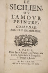 MOLIERE Le Sicilien ou l'Amour peintre, comédie. 1 vol. in-12 relié plein veau, dos à nerfs à caissons fleuris. Paris Ribou 1668 (Edition Originale). L'ouvrage contient à la suite, Amphitrion [Paris Barbin (2è éd.)] et Le mariage forcé [Paris...
