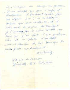 Au sujet de son ami Jan Cox qui va exposer à Amsterdam, et qui se chargera du transport des gravures de Flocon ; ses lithos sont excellentes…