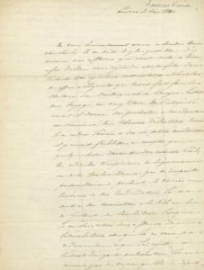 Il est à Londres, et évoque ses électeurs de Bergues et Dunkerque, tout en affectant quelque indifférence sur l’éventuel succès de sa candidature. « Je ne mets à ma nomination à la Chambre ni l’intérêt de l’ambition puisque je me suis retiré des affaires depuis la révolution et que je ne veux pas redemander ce que j’ai rejetté, ni l’intérêt d’un goût parlementaire, je ne connais pas de vie pire que celle du député, mais j’y mets avec l’énergie que vous me connaissez l’intérêt des doctrines que les hommes de mon âge et de ma conviction politique seront appellés bientôt à faire valoir à la tribune. C’est un devoir pour l’homme qui a une pensée politique, une pensée sociale, d’élever la voix dans nos jours de scepticisme et de controverse ; ces controverses où l’esprit de parti se mêle toujours ont besoin d’être éclaircies et ramenées à leur vrai but (l’intérêt du pays) par des voix franches, intrépides et qui puissent rallier toutes les opinions sincères. Je serai peut-être une de ces voix, la plus faible sans doute, mais elle fera nombre, et je ne doute pas qu’une fois que le pays nous aura entendu, cette opinion inaperçue d’abord ne devienne une majorité dans peu d’années ; il y a un principe de vie et d’accroissement dans tout ce qui est vrai ; le tems le développe et la Providence le féconde. Or il y a vérité en nous parce qu’il y a un amour sincère et désintéressé du bien général, parce qu’il y a absence de toute prévention de doctrine et de parti. Nous sommes les premiers peut-être qui auront compris tout entière cette liberté dont on s’est fait tour à tour une arme offensive ou un jouet dérisoire, nous voulons tout faire par elle et pour elle, elle est le seul grand moyen d’action des tems modernes, car elle est la seule grande pensée commune ; mais cette pensée les renferme toutes et c’est ce que nous voudrions prouver et dans la discussion de nos lois et de nos destinées et dans la pratique du pouvoir organisateur si jamais ce pouvoir tombe à son tour entre nos mains ; séparés du libéralisme aujourd’hui nommé ainsi, libéralisme qui n’a été le plus souvent qu’un esprit de destruction et d’oppression, nous voudrions fonder et associer à toutes les idées relligieuses morales et monarchiques un libéralisme créateur et vivificateur qui doit renouveller et reconstituer le monde politique sur la large base de la liberté la plus générale et des intérêts de tous »…. Etc.