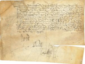 LOUIS XII (1462-1515), Roi de France. P.S., Blois 3 février 1513 ; contresignée par Robert GEDOYN ; vélin oblong in-4 (un peu froissé et taché).