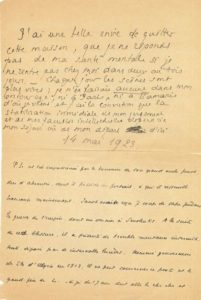 Émouvant dossier sur l’état mental de Louÿs à la fin de sa vie. Dans un état de faiblesse physique et atteint de troubles mentaux, Louÿs a été admis à la Maison de santé de Saint-Mandé. D’une écriture défaite, Louÿs copie de mémoire quelques vers de V. Hugo, dit son désir de rentrer chez lui ; ces notes sont datées et annotées par le médecin [Dr Vinchon], qui indique sur l’une que Louÿs est très impressionné par le souvenir de son grand-oncle Junot duc d’Abrantès.