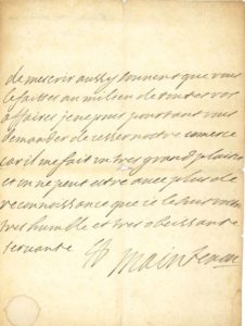 « On a beaucoup de peine icy des vapeurs du Roy Cath. Cest un mal bien facheux pour un prince qui a besoin dune bonne teste, et qui a de grandes affaires sur les bras. Vous voiés de pres celles qui vous ont toujours fait tant de peine, Mr de Vendosme commence bien Dieu veuille quil continue, mais je crains bien la longueur et que tout se passe en chicanes car il paroist que les ennemis ne veulent point en venir aux mains » [le duc de VENDOME combat en Italie pendant la guerre de succession d’Espagne]. Elle remercie son correspondant de lui écrire aussi souvent malgré ses affaires « je ne peux pourtant pas vous demander de cesser nostre commerce car il me fait un tres grand plaisir »…